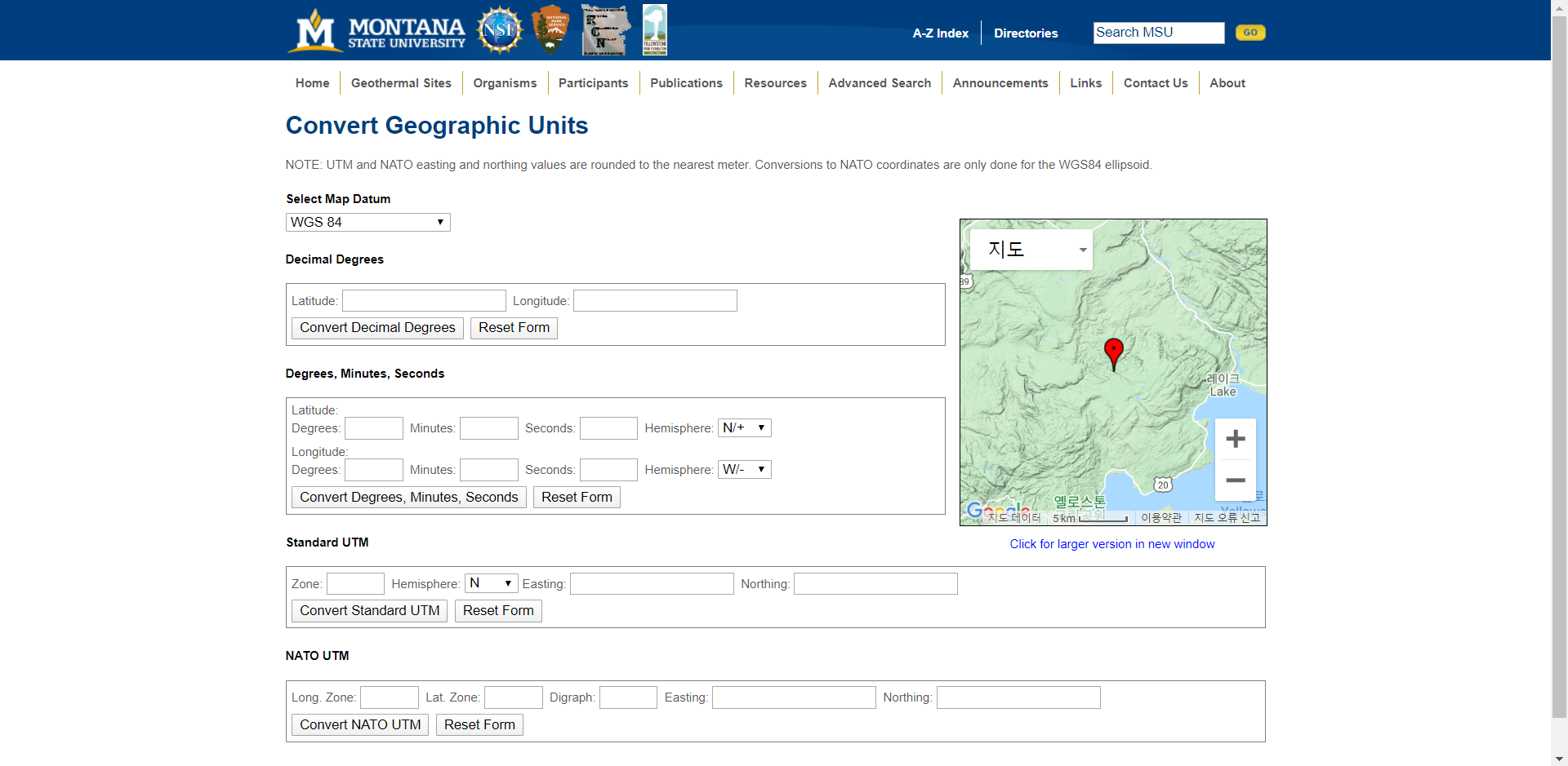 바로 Montana 주립 대학에서 제공하는 좌표계 변환 어플리케이션이다.